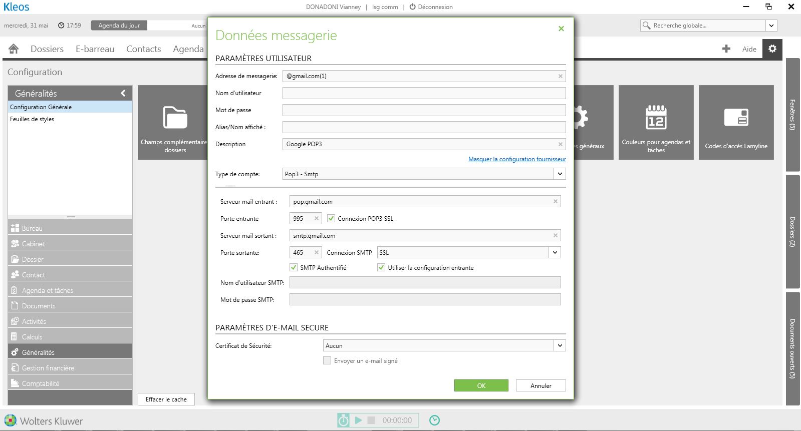 Configurez votre compte de messagerie pour envoyer et recevoir des e-mails dans Kleos